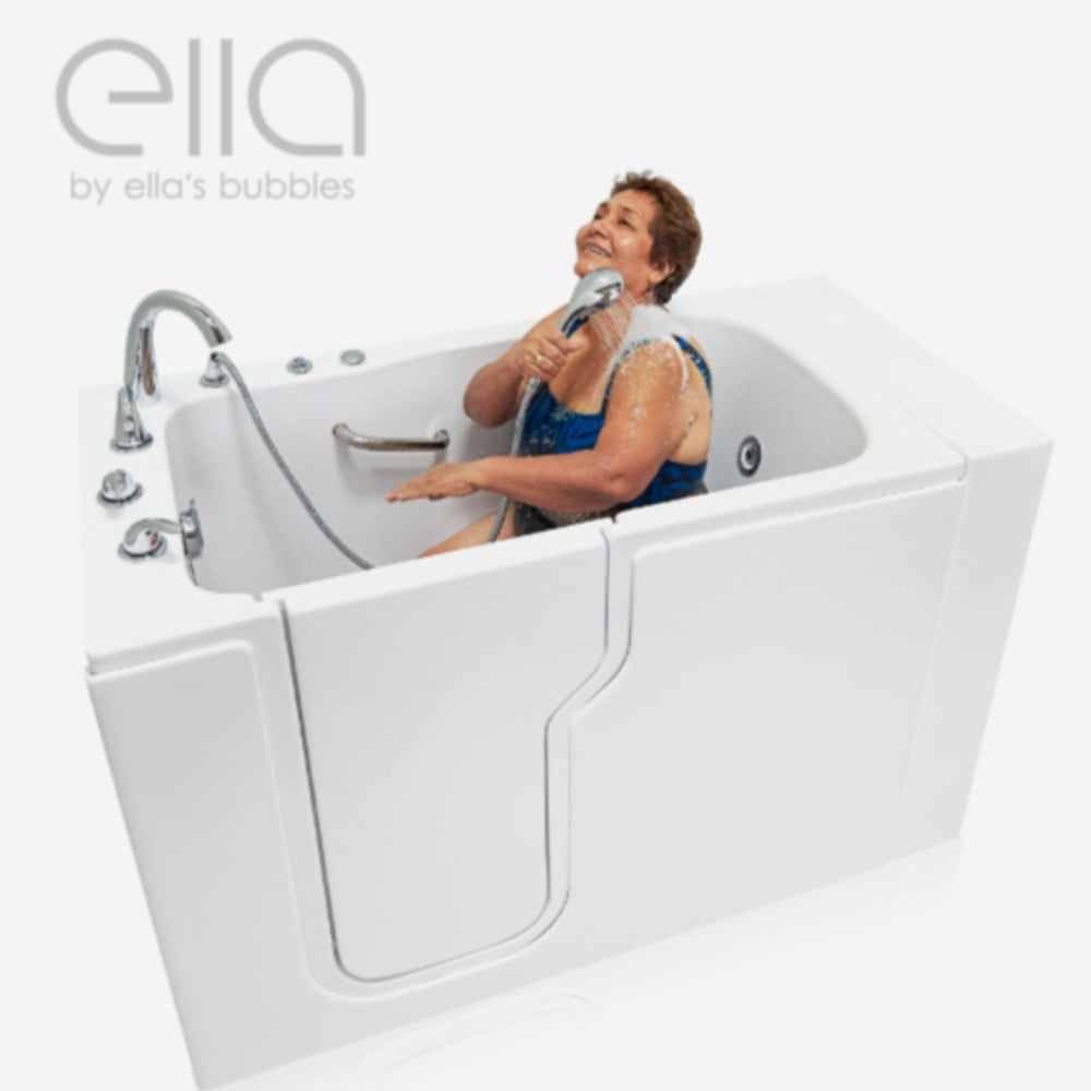 Ella Standard acrylic walk-in bathtub is sized for the average bather and comes equipped with a comfortable wide 21” molded seat and an inward swing S-Shape acrylic door, giving you a modern aesthetic great for any bathroom. A low step-in threshold, textured slip resistant floor, as well as wall and deck mounted grab bars work in unison to allow for easy and safe entry and exit of the tub. This walk in tub is equipped with an oversized 2″ floor drain that includes a pull up emergency chain for a fast and reliable drainage and exit.